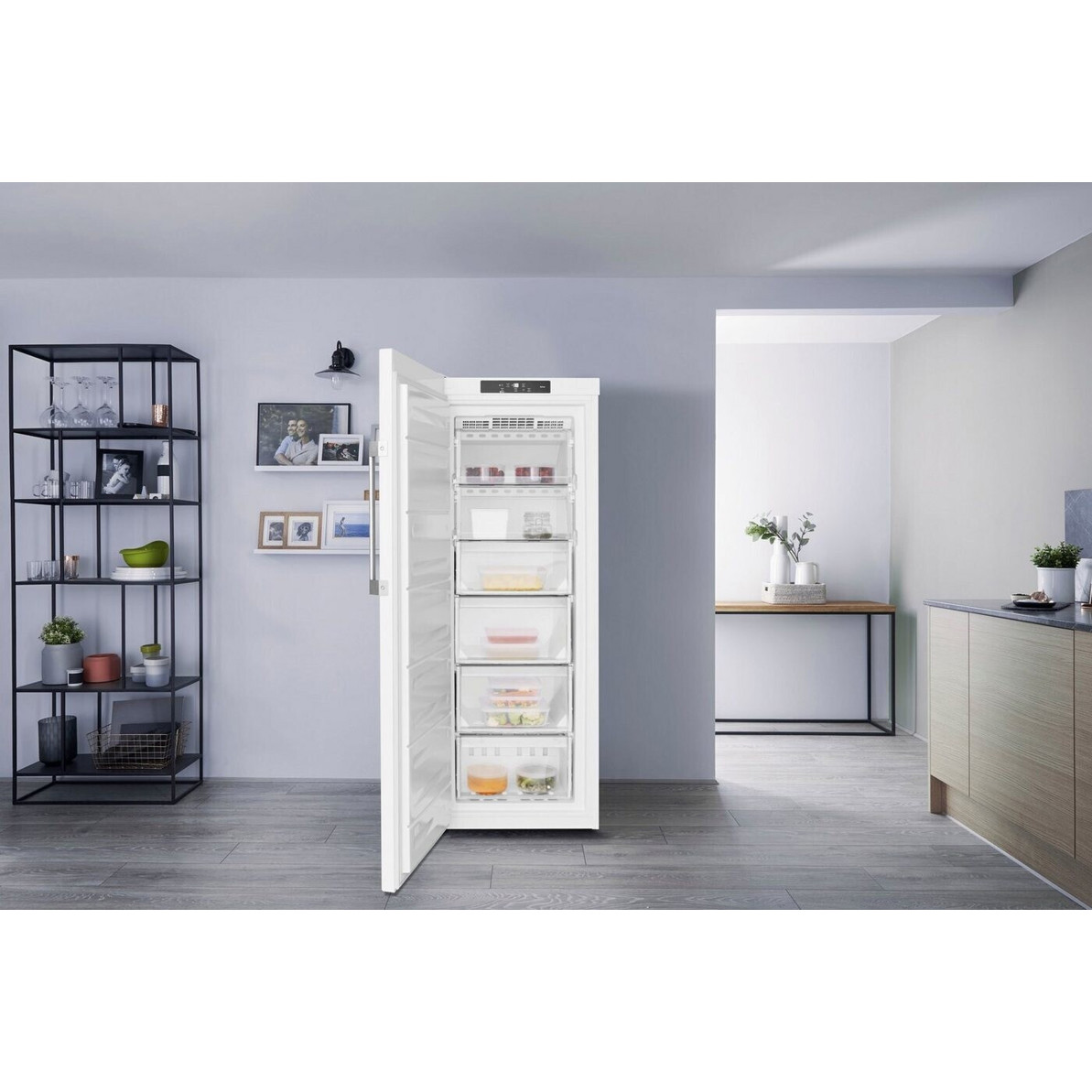 Der Gefrierschrank verfügt über eine Schnellgefrierfunktion (SuperFrost), ein Gefriervermögen von 26 kg in 24 Stunden und eine Lagerzeit bei Störung von 24 Stunden. Er ist zudem mit Abstellflächen, Kälteakku und Eiswürfelschale ausgestattet.