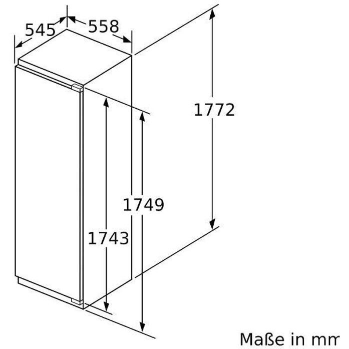 Sicherheitsmerkmale wie ein Türalarm und eine selbstschließende Tür bieten zusätzlichen Schutz. Die Türanschläge sind wechselbar und linksseitig montiert, was eine flexible Integration in Ihre Küchenplanung ermöglicht. Mit den Abmessungen von 55,8 cm Breite, 177,2 cm Höhe und 54,5 cm Tiefe fügt sich der integrierbare Einbaugefrierschrank nahtlos in jede Küche ein.