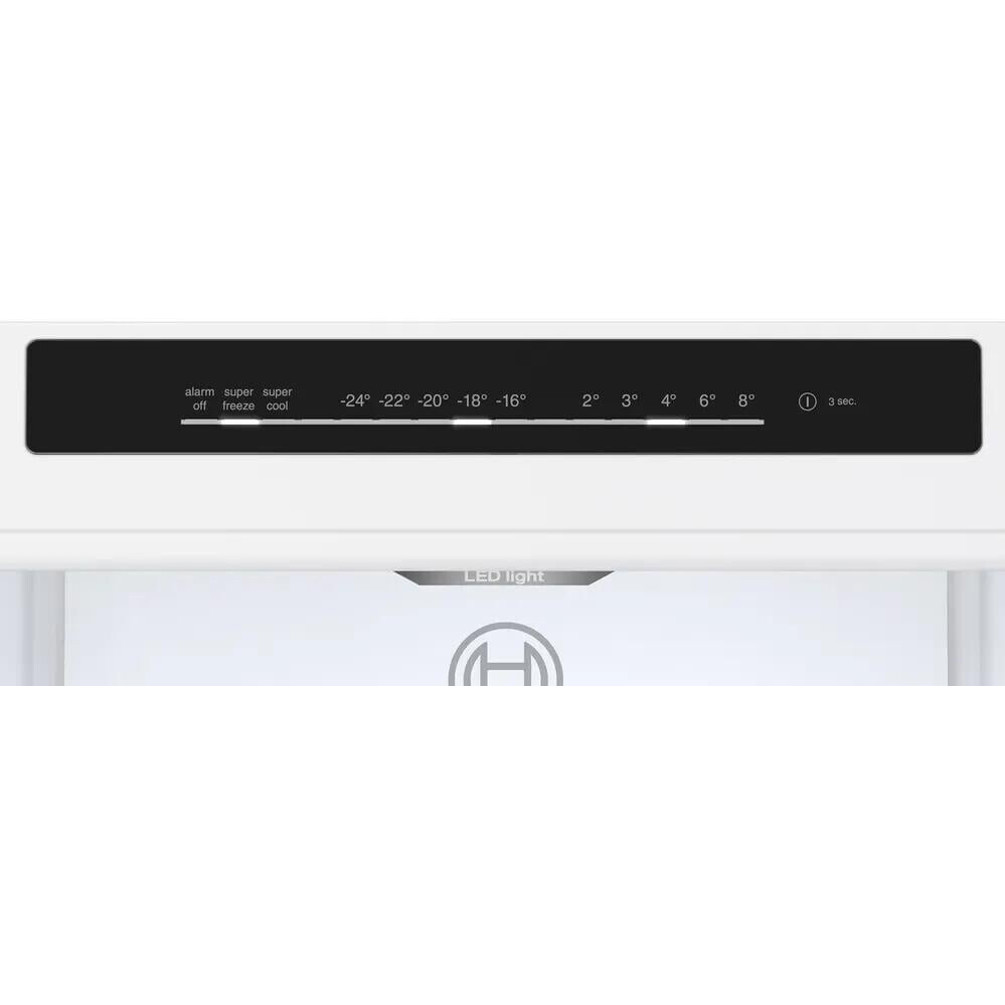Die Kühl-Gefrierkombination misst 60 cm in der Breite, 186 cm in der Höhe und 66,5 cm in der Tiefe. Die Türanschläge sind rechts montiert, aber wechselbar, was flexible Aufstellungsmöglichkeiten erlaubt. Mit einer Beleuchtung durch LED und Sicherheitseinrichtungen wie einem Türalarm bietet die Bosch KGN362LBF nicht nur Funktionalität, sondern auch Sicherheit im Alltag.