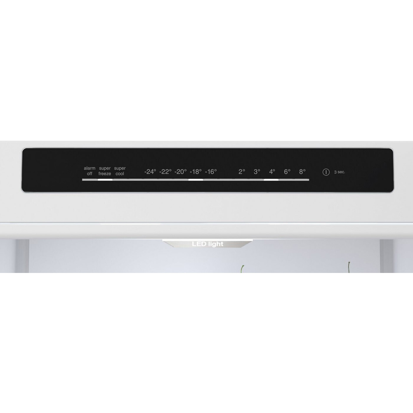 Dieses Modell verfügt über Total NoFrost, Schnellgefrieren, Schnellkühlen, eine 0-Grad-Zone sowie Sicherheitsfunktionen wie Türalarm und Störungsanzeige.