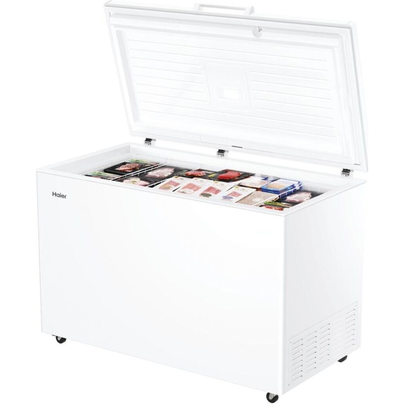 Haier - HCE420E - Gefriertruhe - 418 Liter Inhalt, Schnellgefrieren, mit Rollen