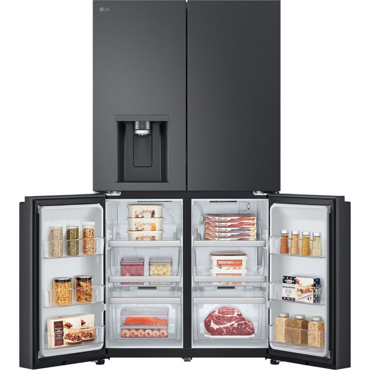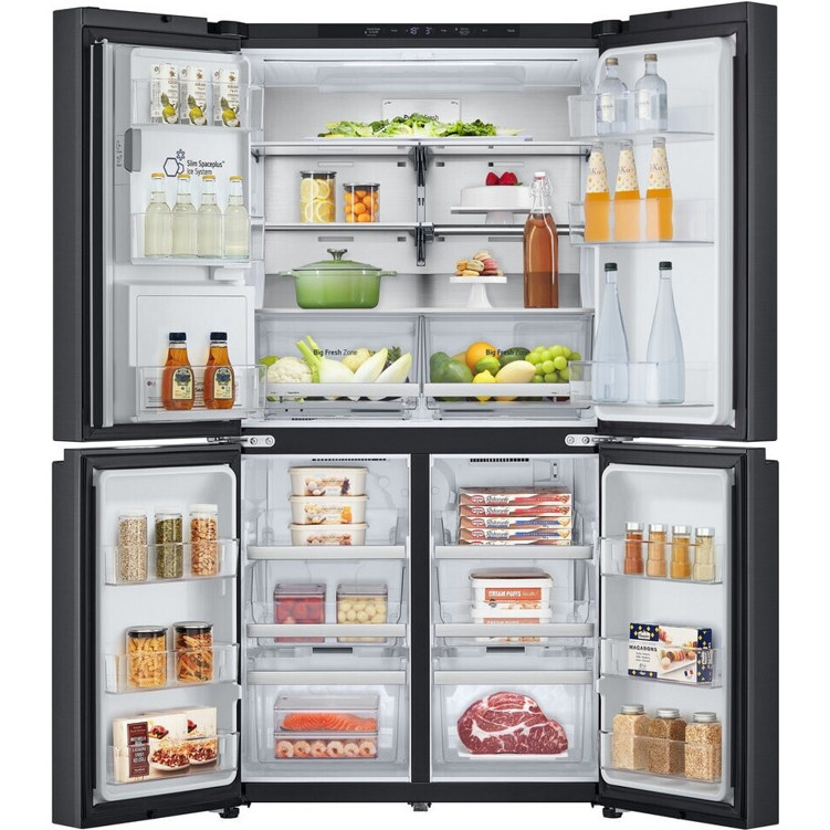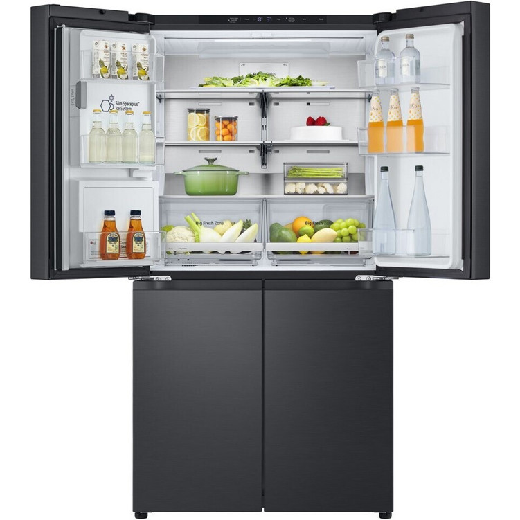 Die Abmessungen des LG GML960EVBE betragen 179,2 cm in der Höhe, 91,4 cm in der Breite und 72,9 cm in der Tiefe bei einem Gewicht von 134 kg. Die grifflosen Fronten verleihen dem Kühlschrank ein minimalistisches und stilvolles Aussehen. Im Inneren sorgen eine LED-Beleuchtung, vier Abstellflächen und zwei Kühlschubladen für eine optimale Organisation des Kühlbereichs. Der Gefrierbereich ist mit vier Gefriergutschubladen ausgestattet.