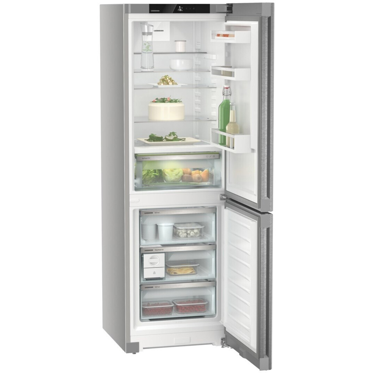 Die Liebherr CBNsda 5223-20 Plus Kühl-Gefrierkombination in Silber ist die ideale Lösung für Familien, die Wert auf frische Lebensmittel und innovative Technologie legen. Mit ihrer freistehenden Bauart und den Maßen von 59,7 cm Breite, 67,5 cm Tiefe und 185,5 cm Höhe fügt sie sich nahtlos in jede moderne Küche ein. Das Gerät bietet ein großzügiges Gesamtvolumen von 321 Litern, aufgeteilt in einen 218 Liter umfassenden Kühlbereich und einen 103 Liter großen Gefrierbereich.