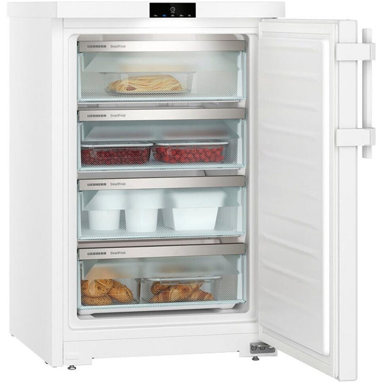Ausgestattet mit der innovativen LowFrost-Technologie von Liebherr reduziert der Fd 1404-20 die Eisbildung deutlich, wodurch das Abtauen seltener erforderlich ist und der Stromverbrauch konstant niedrig bleibt. Im Inneren befinden sich vier Gefriergutschubladen, die für eine übersichtliche Organisation sorgen. Dank VarioSpace können Sie bei Bedarf Schubladen und Glasplatten entfernen, um auch größere Gefriergüter optimal zu lagern.