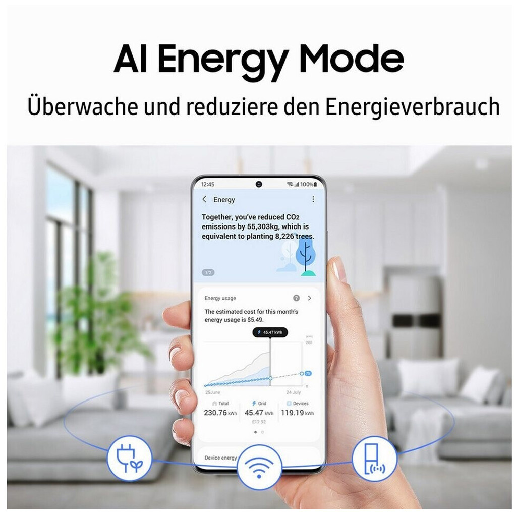 Ausgestattet mit einem No-Frost-Kühlsystem gehört manuelles Abtauen der Vergangenheit an. Die Luftschallemissionsklasse C und ein Geräuschpegel von nur 37 dB(A) sorgen für einen leisen Betrieb in Ihrer Küche. Die innovative LED-Beleuchtung im Innenraum und Sicherheitsglas-Abstellflächen tragen zur Funktionalität bei. Zudem verfügt der Samsung RF65DG9H0EB1EF über praktische Features wie ein Multi-Airflow-System, Power Freeze und Twin Cooling Plus, die für eine optimale Lagerung Ihrer Lebensmittel sorgen. Der integrierte Wasserspender und die digitale Temperaturanzeige runden das Komfortpaket ab. Dank der Smarthome-Fähigkeit über WLAN lässt sich dieser intelligente Kühlschrank bequem in Ihr vernetztes Zuhause integrieren, mit Features wie Food Reminder und Food Cam.