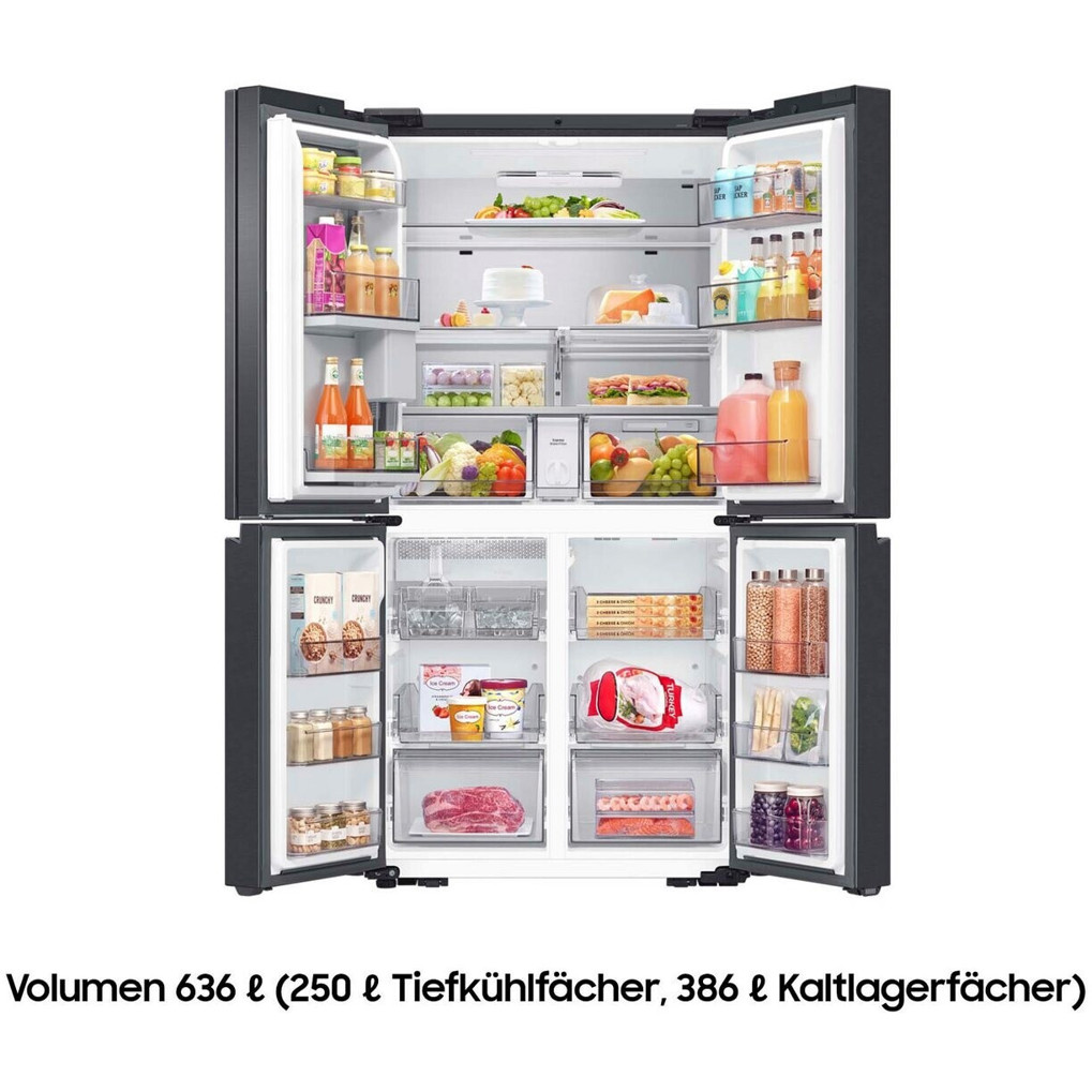 Der Samsung RF65DG9H0EB1EF ist mit seinen 636 Litern Gesamtinhalt ideal für Familien konzipiert und bietet ausreichend Platz für den Bedarf mehrerer Personen.