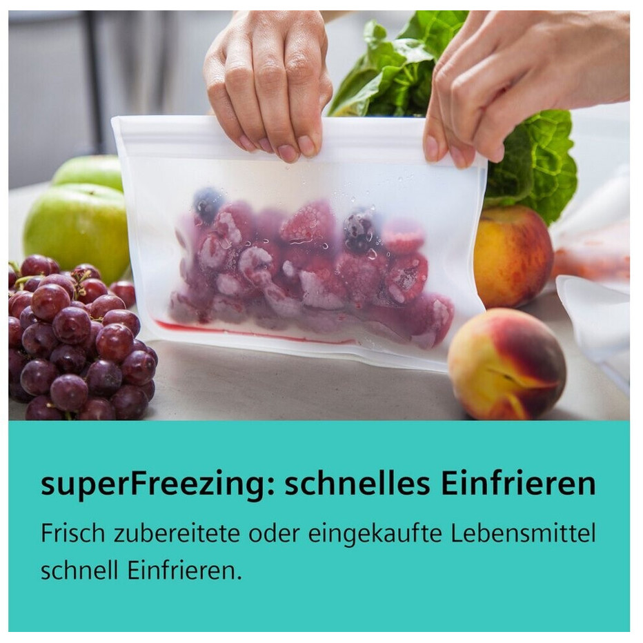 Der Siemens GI81NACE0 bietet einen großzügigen Gefrierbereich von 212 Litern, verteilt auf fünf Schubladen und zwei Klappen, ideal für große Haushalte.