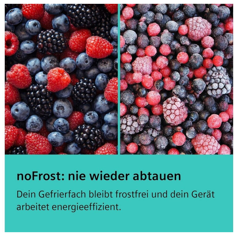 Ausgestattet mit der No-Frost-Technologie gehört manuelles Abtauen der Vergangenheit an. Das Multi-Airflow-System sorgt für eine gleichmäßige Temperaturverteilung im gesamten Innenraum. Funktionen wie Schnellkühlen und Schnellgefrieren ermöglichen es Ihnen, neue Lebensmittel schnell auf die optimale Temperatur zu bringen. Die Abtauautomatik im Kühlteil erleichtert zusätzlich die Pflege. Der wartungsfreie No-Frost-Kühlschrank verfügt über eine effiziente LED-Beleuchtung im Innenraum.