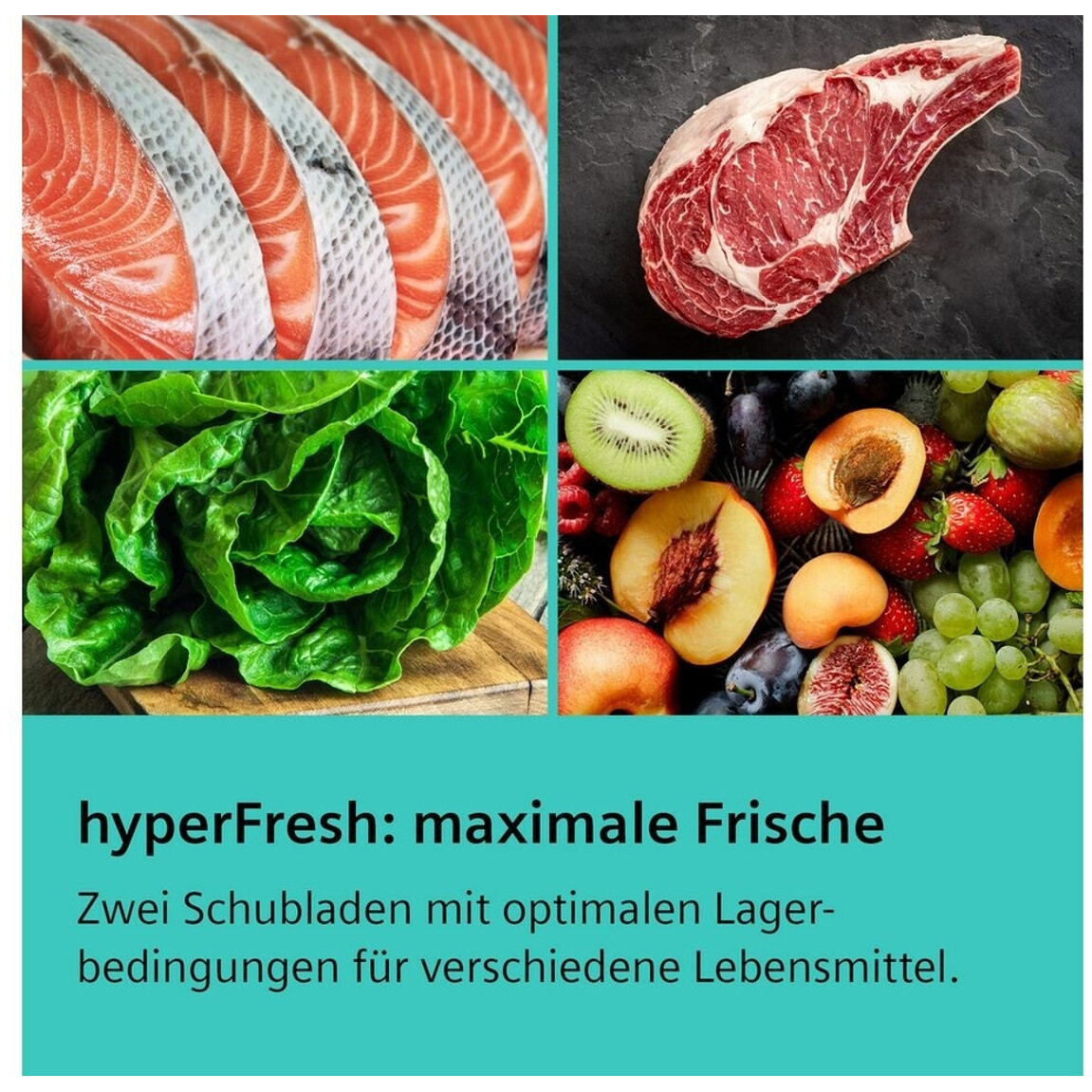 Er verfügt über Funktionen wie hyperFresh, freshSense und Superkühlen, die für optimale Lagerbedingungen und langanhaltende Frische sorgen.